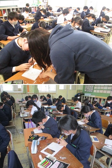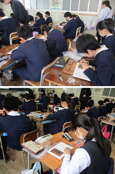 6年生が図画工作科の時間、「メモリアルクロックづくり」に取り組んでいました。