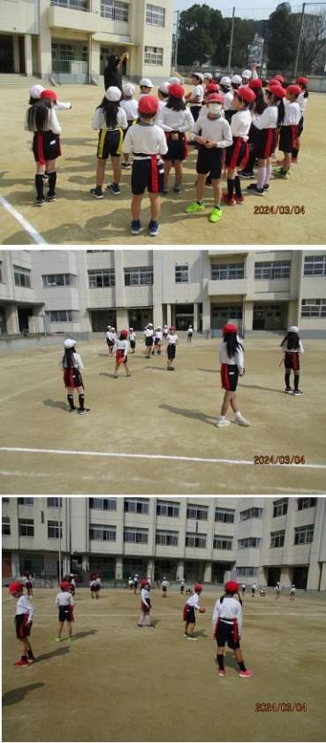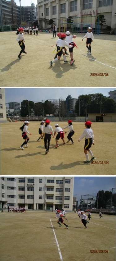 3年生が体育科の時間、「タグラグビー」に取り組んでいました。