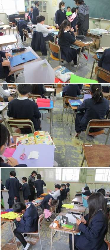 4年生が図画工作科の時間に、「カードでつたえる気持ち」の学習に取り組んでいました。
