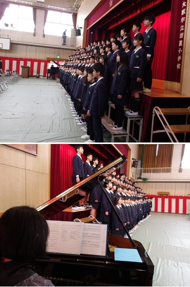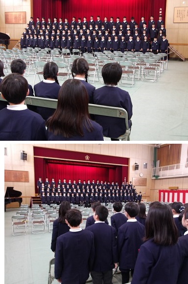 3月8日(金)5・6年が初めて合同で卒業式の練習をしていました。