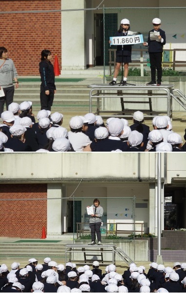 その次に、代表委員会の児童がユニセフ募金の報告と協力へのお礼の話をしました。