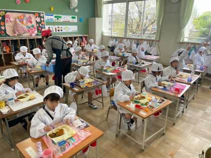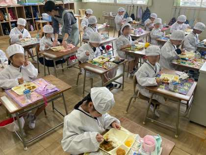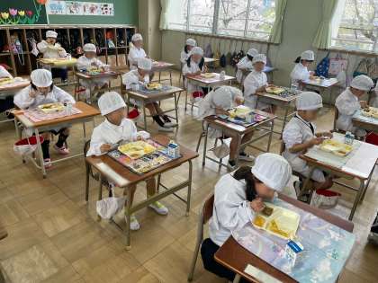 小学校生活最初の給食の献立は、「カレーライス」です。