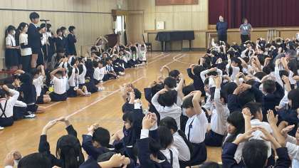学校に関する○×クイズをして盛り上がりました。すこし学校のことがわかったかなあ。