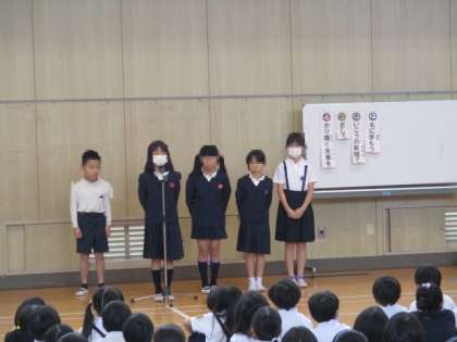児童朝会で、児童会から今年度の目標の発表がありました。