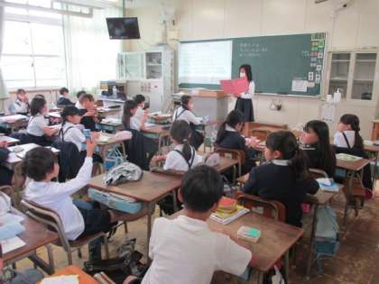 月に一度、朝の会の時間、健康委員会が呼びかけ、せいけつ調べを行っています。ハンカチ・ティッシュ・つめの伸びについて確かめ合いました。