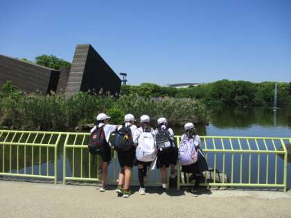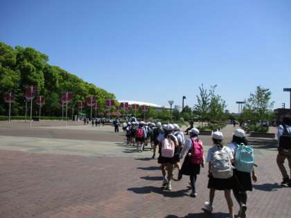 快晴の天気の中、4年生が長居公園へ遠足に行きました。
