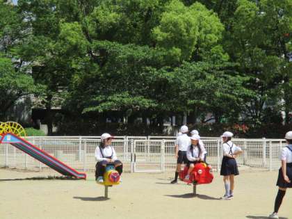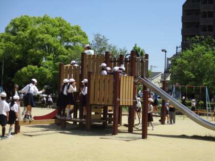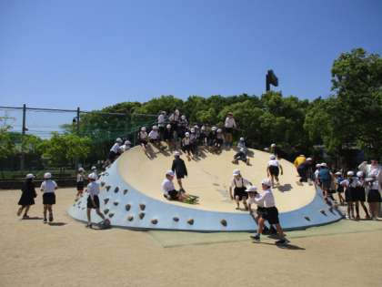 校園の遊具でも遊びました。子どもたちは元気いっぱいで遊んでいました。