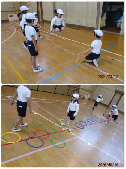 様々な教具のある学習環境があれば、子どもたちは自由に、自分の体をめいっぱい使って運動します。さらに先生の声かけによって、活動の工夫が生まれます。子どもたちの「できた」という実感は、「○○さん、見て! 先生、見て!」という子どもの声からうかがえます。こうして、運動を楽しみ、自分の体を自在に使える運動能力を高めてほしいものです。