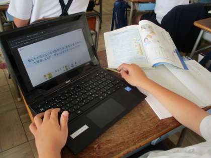 学習者用端末のクラウド環境にまとめることで、お互いが書いたことを共有することができます。
