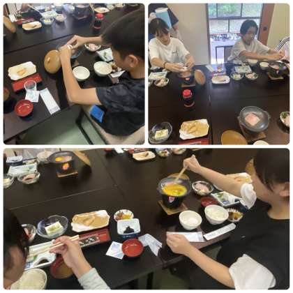 ご飯がすすむ美味しい食事をいただきました。自分で卵を割って、目玉焼きかスクランブルエッグを作る経験もしました。