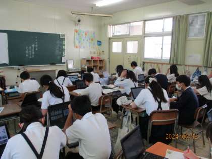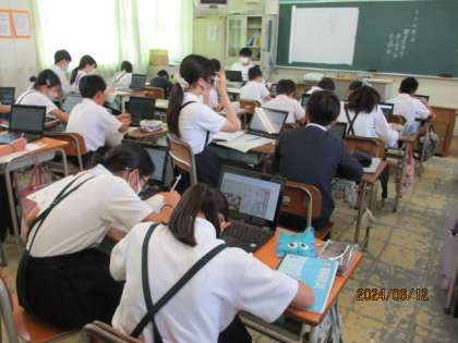 修学旅行の経験と関連させて、調べ学習をしています。調べたことは新聞にしてまとめます。6年生だけでなく、他の学年にも伝えてほしいです。
