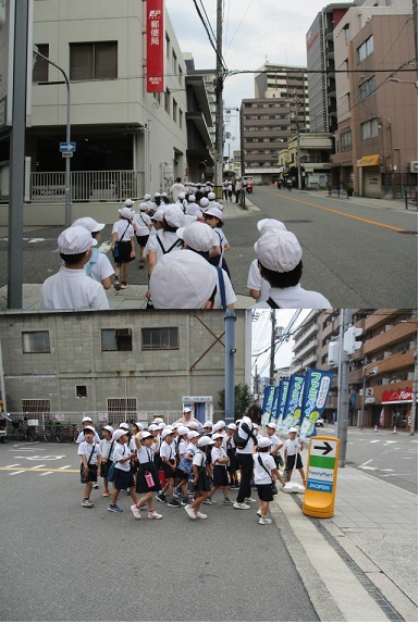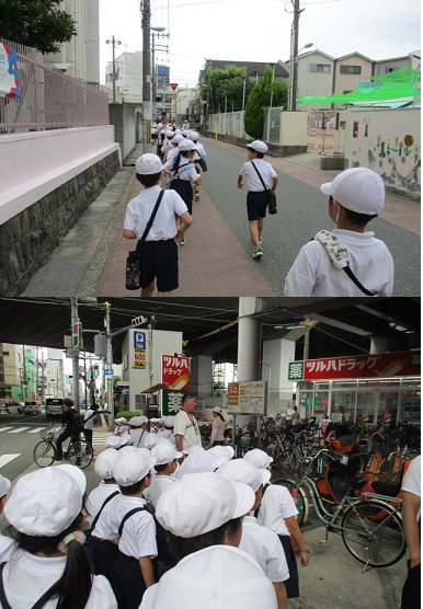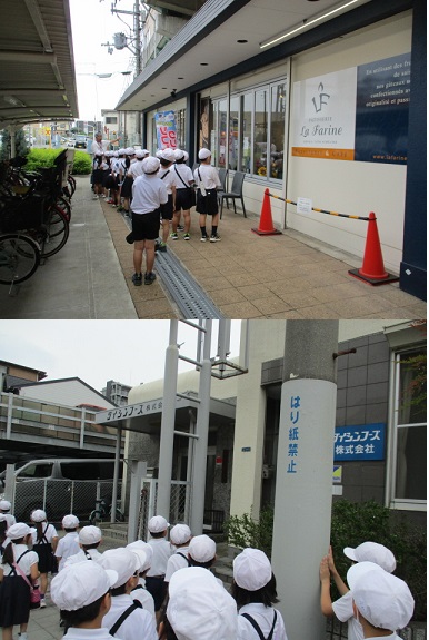 2年生は19日(水)に町たんけんでグループに分かれて校区内のお店を見学しに行きます。今日は、その練習で、町たんけんに行くお店の場所に行きました。