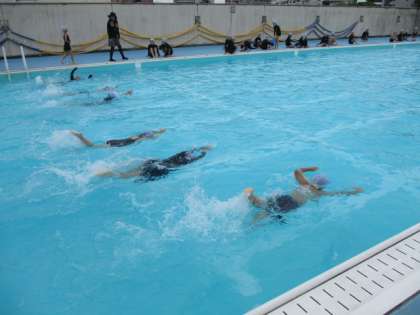 泳力ストのあと、4人チームでリレーをしました。走ったり、泳いだり。盛り上がりました。