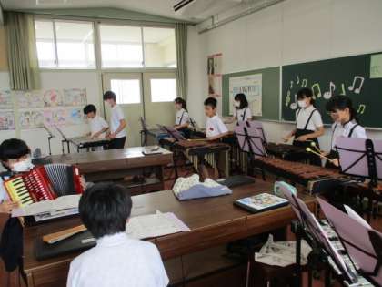 6年生が「ラバーズコンチェルト」の合奏に取り組んでいます。この曲は4つのパートで合奏するように編曲されています。1クラスを2つのグループに分け、グループごとに各パートの役割を考えながら、子どもたちが自由に楽器を選びます。練習が進んでくれば、お互い聴き合う活動をします。グループごとに使う楽器が違うので、どんな曲に仕上がるか、楽しみです。