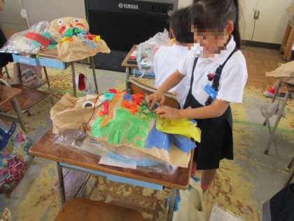2年生 図画工作科「くしゃくしゃぎゅ」〜いよいよ完成へ〜