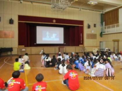姫里地域青少年育成会のみなさんによる七夕まつりが催されました。「七夕のお話」や「じゃんけん列車」、「猛獣狩り」などのゲームをしました。