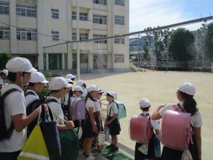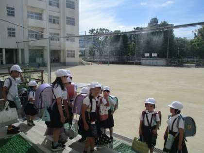 PTA予算から、「ミストホース」を購入していただき、管理作業員さんが校舎前に設置してくださいました。課業中だけでなく、PTA活動や地域、子ども会、いきいき活動など、様々な場で利用してください。