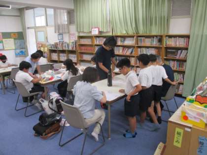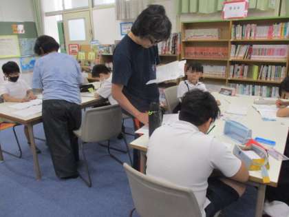 4・5年生が放課後、算数の課題に取り組んでいます。難しい問題に心が折れそう。でも先生やサポーターの方から、アドバイスをもらって、自分で答えを導き出すことができたときには、とてもうれしそうでした。こつこつと粘り強く取り組むことができる気持ちは大切です。