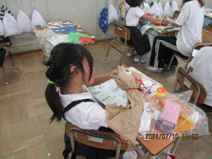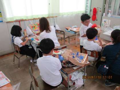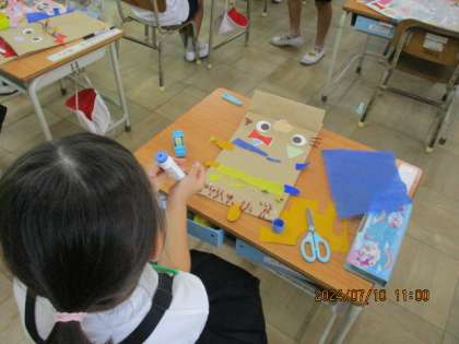 ふくろなどの素材をぱくぱくすると、いろんなものに見えてきます。その姿をイメージしながら製作していきます。