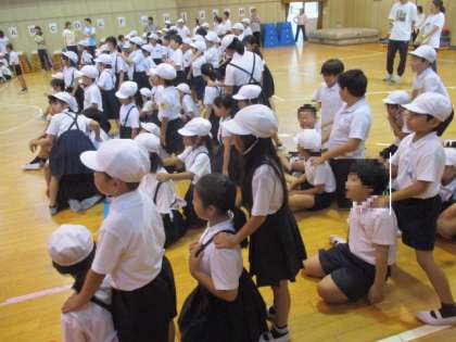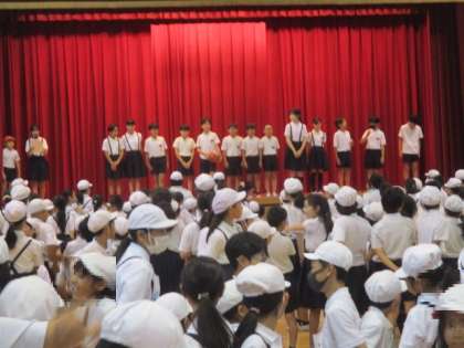 1学期最後の集会は「何人通ったでしょう?」クイズです。