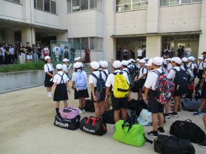 7月22日(月)5年生が林間学習に出発しました。この一泊二日で友だちと協力し合い「プラス」の気持ちで活動をしてほしいです。