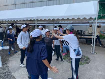スタッフの愛情をもった厳しいチェック。一発合格を目指しました。「合格」をもらった班は、先生と喜びのハイタッチ!