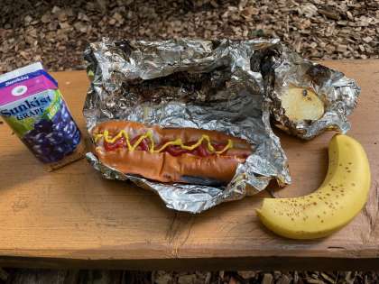 香ばしくフワフワのカートンドックができました。野外での朝食もいい経験ですね。