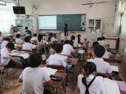 3年生が理科「かげと太陽」の学習に取り組んでいます。今日は温度計の目盛りの読み方や扱い方を学習しました。見る角度を間違うと、正しい温度が測れないので、しっかり覚えて実験に生かしてほしいです。