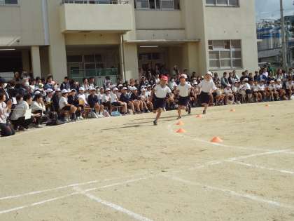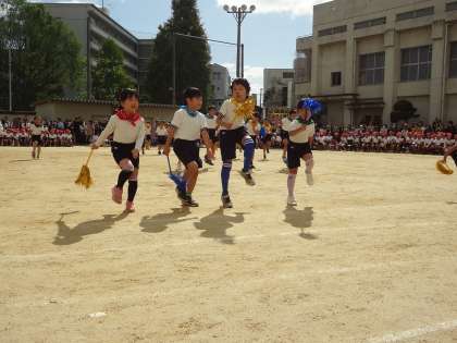 かわいらしいけど、頼りになる姫里小ゴーストバスターズです。徒競走、みんな一生懸命ゴールを目指しました。