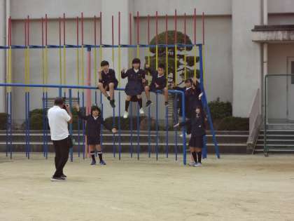 個人写真撮影のあと、グループ写真撮影。思い思いの場所で撮影しました。卒業に向けての取り組みが始まりました。
