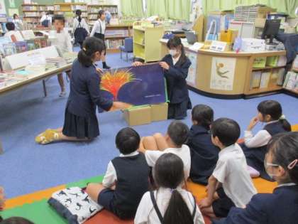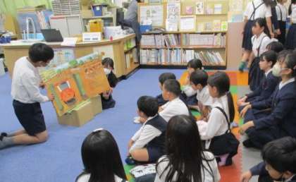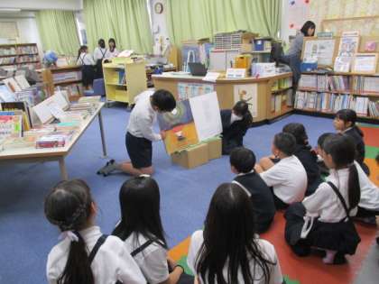 図書委員会が「秋のミニ読書の会」を全6回、図書室で行います。図書委員が読み聞かせをします。今日は大型絵本を使っての読み聞かせでした。明日もありますよ。ぜひ参加してみましょう。