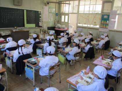 今日の給食では、ビビンバの具材として使われています。具材(肉と野菜)をごはんに混ぜながら、みんなおいしそうに食べていました♪