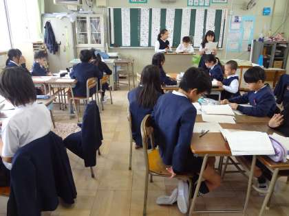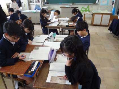 誰もが知っている物語「ごんぎつね」。最後の場面「目をつぶったままうなずいたごんのきもち」をこれまでの場面や登場人物の気持ちを根拠に伝え合いました。自分で考え、グループで話し合い、まとめたことを発表し合いました。友だちや他のグループの考えを聞いて、自分の考えとの共通点や違いに気づき、考えを深めていきました。授業の終わりには、自分の学びについて、振り返りを行っています。