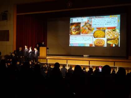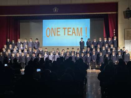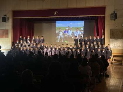 グループごとに世界の国々の文化を調べ、発表しました。世界の国々も身の回りの仲間も、それぞれの違いを認め合う気持ちを大切にしていくこと、さらに最高学年としての決意を発表しました。