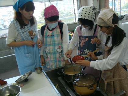3時間目と4時間目で、ご飯とみそ汁を作りました。
