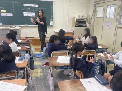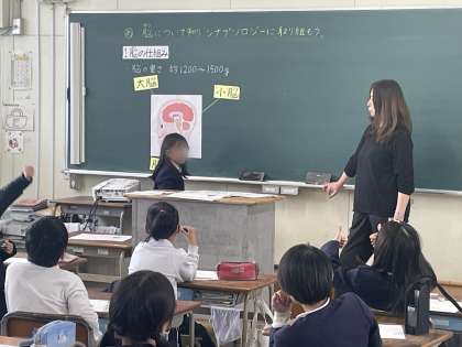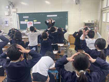脳について知り、シナプソロジーに取り組みました。シナプソロジーとは、いろいろな体の動きを行うことで脳に刺激を与え、活性化させるエクササイズやトレーニングのことです。認知機能や注意力の向上を図るものですが、子どもたちは「できた!」「できなかったあ!」と、大盛り上がりでした。