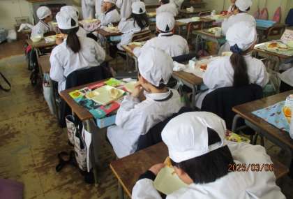 給食の中華がゆは、精白米を多めの水でやわらかく煮、具に肉団子、だいこん、チンゲンサイ、にんじん、しいたけを入れ、塩、うすくちしょうゆ、チキンブイヨンで味付けします。仕上げにごま油で風味をつけたら完成です♪