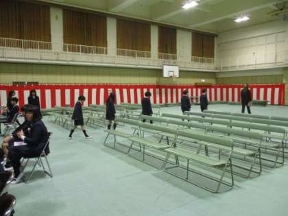3月3日(月)から6年生と5年生が講堂で卒業式の練習をしています。今日、6年生は、歌と呼びかけを中心に練習しました。5年生も6年生のために一生懸命練習しています。