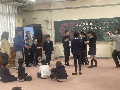 みどり学級で学ぶ仲間が集まって、卒業を迎える6年生3人をお祝いしました。ゲームをしたり、プレゼントを渡したりして楽しく過ごしました。下級生のお世話をしっかりとしてくれたお姉さん、お兄さんでした。寂しくなりますが、小学校生活残りの時間、楽しく過ごしましょうね。