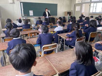 始業式を終えて、それぞれの教室では、担任の先生の自己紹介や願いなどをしっかりと真剣に聞いている子どもの姿が見られました。すてきな教室になるよう、担任と子どもたちが心を一つに取り組んでほしいと思います。