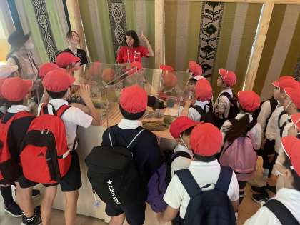 様々な国の人から、その国のことについて話を聞くことができました。興味を持って一生懸命話を聞く3年生でした。お弁当を食べた場所で噴水ショーが始まり、音楽に合わせた噴水の動きに大興奮でした。見たり聞いたり触ったりと体験しながら、過ごすことができました。