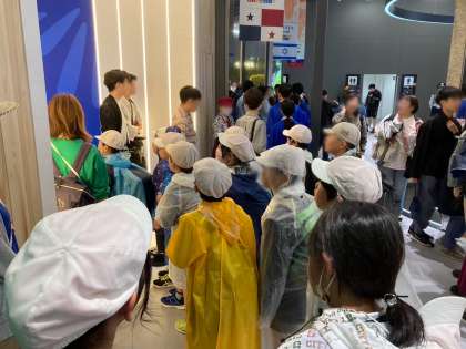 あいにくの雨のスタートとなり、お昼前に雨はやみましたが、そのあとは日差しが暑く、大変な天候の中の活動となりました。その中でも様々な国のことや未来のことについて学ぶことができました。お弁当は「大屋根リング」の下で食べました。5年生にはパビリオンの割り当てがあり、心に残る体験となりました。