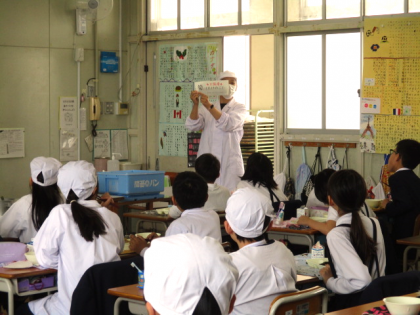 給食時間には、教室に行って、給食指導をしています☆その日の給食に使われている食べものについてのお話しや、クイズをします。食べ物に興味を持ち、給食を好きになり、美味しく楽しく残さず食べてもらえるよう行っています。今日は、5年生と6年生の教室でたけのこのお話しをしました。