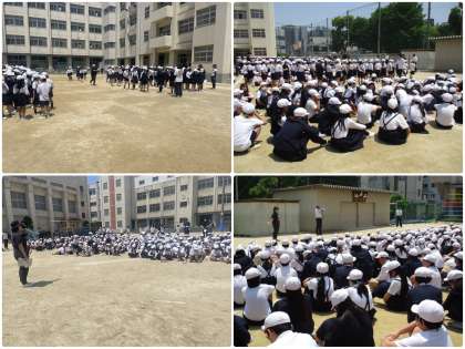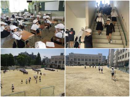 訓練の前に、事前に学習してすばやく避難することができました。放送のコールが2回なったら、火事のサイン。まず、どんなことが学校内に起きているのかを知ることが大切です。そして、避難の時には、決められた行動ができることは当然大切ですが、避難訓練に真剣に取り組もうとする学級・学年・学校全体の雰囲気が大切です。今日の訓練は「真剣に避難訓練に取り組むぞ。」という子どもの気持ちが高く思える行動が見られました。