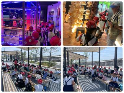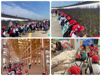 パビリオンやコモンズに入って、いろいろな国の文化や風土について見聞きしました。さまざまな国や地域の雰囲気で感じ、子どもたちの心に印象づけられた体験になっていることを願います。噴水ショーを見たり、ミストを全身に浴びたりもしました。帰りのゲートでは、スタッフの方に心温まるお見送りを受けました。日差しは強い1日でしたが、大屋根リングの下などの日かげは涼しく、さわやかな風を受けました。
