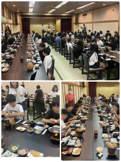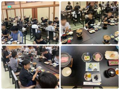 イカのお造りやあおさのお味噌汁など海の食材。それから、自分で卵を割って、目玉焼きかスクランブルエッグを作る経験もしました。しっかり食べて、元気に活動しましょう。