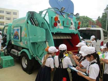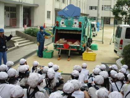 大阪市環境局の職員さんに来ていただき、大阪のごみ収集や環境について学びました。パッカー車のしくみや大阪市のごみ収集の方法やきまり、働く人の思いを知る機会となりました。4年生では、自分たちの生活が安全で安心に過ごすことができるのは、様々な人々や社会のしくみがあることを学んでいきます。