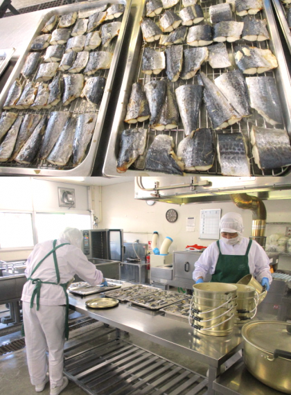 さごしのおろしじょうゆかけは、さごしは料理酒で下味をつけ、焼きます。だいこんおろし、みりん、うすくちしょうゆを合わせて煮立て、さごしにかけてできあがりです。このおろしじょうゆかけは、どんなお魚にも合う万能なタレです!