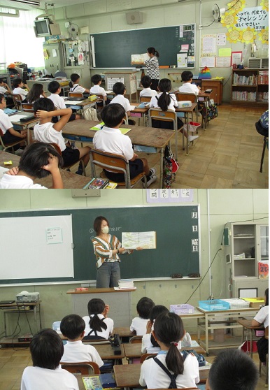 毎月1回、朝の会の時間に、図書館ボランティア「どんぐり」さんによる絵本の読み聞かせの時間があります。
