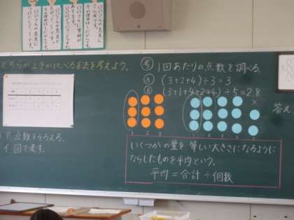 今日は、的当ての点数を題材に、平均の意味と求め方を学習しました。